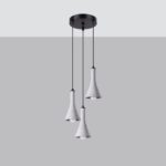 Oferowany model możesz wykorzystać w roli lampy nad wyspę kuchenną, czy do oświetlenia salonu lub sypialni. Kaskadowa lampa wisząca Reece 3 na okrągłej podsufitce wyposażona jest w regulowaną długość zawieszenia oraz klosze przystosowane do żarówek E14.