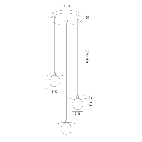 Kaskadowa lampa wisząca Trevi 3 ze złotymi elementami