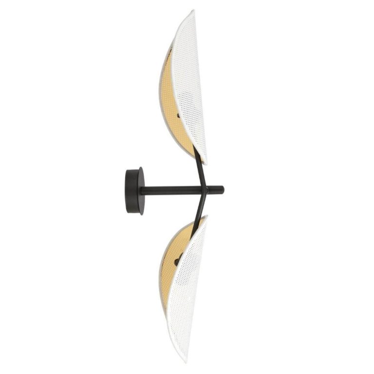 Kinkiet ścienny Alicante to propozycja wprost wyjątkowa! Jeszcze większej dekoracyjności dodaje jej klasyczna kolorystyka. Stelaż jest czarny, a klosze dwukolorowe: z zewnątrz białe, a wewnętrz złote. Każda z tych barw doskonale ze sobą koresponduje, razem tworząc harmonijną całość, która z łatwością daje się aranżować. Opisywany model świetnie będzie się prezentował w towarzystwie innych dodatków w bieli, czerni i złocie. Propozycja ta pasuje zarówno do jasnych, jak ciemniejszych w tonacji wnętrz.