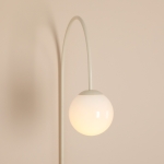 Kremowy stelaż i mlecznobiały klosz sprawiają, że lampa-łuk Una nadaje przestrzeni delikatności i nowoczesnego wyrazu. Model doskonale wkomponowuje się w jasne aranżacje, którym nadaje przytulności – zarówno za sprawą jasnobeżowego stelaża, jak i miękkiego oświetlenia.