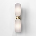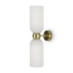 Charakterystyczną cechą kinkietu ściennego Antic 2 na złotym stelażu jest podwójny klosz wykonany ze zdobionego szkła w białym kolorze. Jedna część klosza skierowana jest w dół, a druga w górę. Kinkiet dekoracyjny Antic 2 przystosowany jest do dwóch żarówek E14 – zwykłych lub LED.