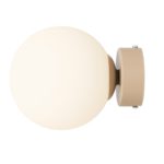 Oprawa wyróżnia się kontrastowym zestawieniem materiałów oraz harmonijnością kształtów – kinkiet Bram S składa się z okrągłego, metalowego stelaża oraz szklanego klosza w formie idealnej kuli. Dopełnieniem całości jest subtelna biało-beżowa kolorystyka, idealnie wpisująca się w aktualne trendy aranżacyjne. To propozycja, która wyjątkowo dobrze zestawia się z jasnymi wnętrzami utrzymanymi w neutralnej tonacji. Kinkiet ścienny Bram S z mlecznobiałym kloszem i beżowym stelażem pięknie współgra z drewnianymi meblami, elementami wykonanymi z kamienia, czy z naturalnymi tkaninami.