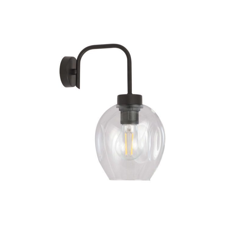 Industrialny kinkiet ścienny Dan wyposażony jest w transparentny klosz oraz czarny stelaż, dlatego świetnie łączy się z praktycznie każdym wystrojem wnętrza oraz kolorem ścian, czy mebli. Uniwersalne są również jego wymiary. Cały kinkiet ścienny Dan w industrialnym stylu ma wysokość 26 cm oraz szerokość 14 cm; sprawdza się zarówno w mniejszych pokojach, jak i w bardziej przestronnych wnętrzach. Idealnym dla niego miejscem może być wąski korytarz, przytulna sypialnia, czy duży salon.