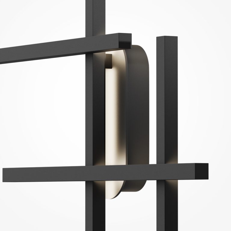 Kinkiet ścienny Halo w klasycznym kolorze ze sklepu online Ryssa składa się z przyściennika oraz designerskiej formy klosza składającej się z kilku podłużnych elementów (dwa pionowe i dwa poziome). Kinkiet nowoczesny Halo w całości wykonany został z wysokiej jakości metalu.