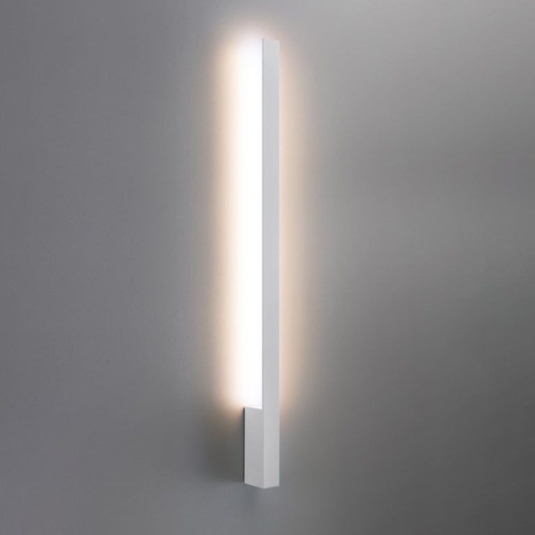 Model wyróżnia się oszczędną formą: klosz ma kształt wąskiej listwy o wysokości 90 cm, która na ścianie tworzy subtelną linię światła. Dzięki szerokości i głębokości zaledwie 6,5 cm, kinkiet idealnie nadaje się do pomieszczeń o ograniczonym metrażu. Z powodzeniem możesz także wykorzystać go do podświetlenia wybranej strefy większego wnętrza – na przykład salonu, czy przestronnego holu.