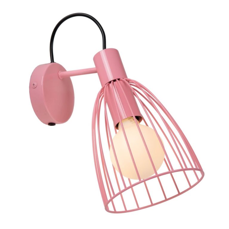 Główną częścią oprawy jest ażurowy klosz całkowicie odsłaniający żarówkę, która sama w sobie również staje elementem dekoracyjnym. Różowy kinkiet ścienny Macarons wykonany został w całości z metalu, dzięki czemu wyróżnia go trwałość. Dodatkowo model umożliwia zmianę kąta padania światła – to rozwiązanie sprawdzi się, chociażby w czasie czytania.