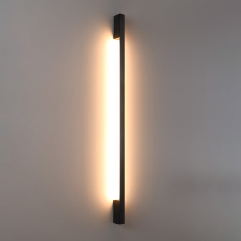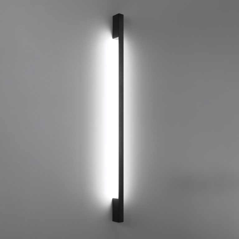 Kinkiet ścienny Sappo L wyróżnia się również wyjątkowo minimalistyczną formą wąskiej listwy. Model ma 150 cm wysokości i jedynie 4 cm szerokości oraz 6,5 cm głębokości, dlatego staje się jedynie akcentem, a nie dominującym elementem wystroju.