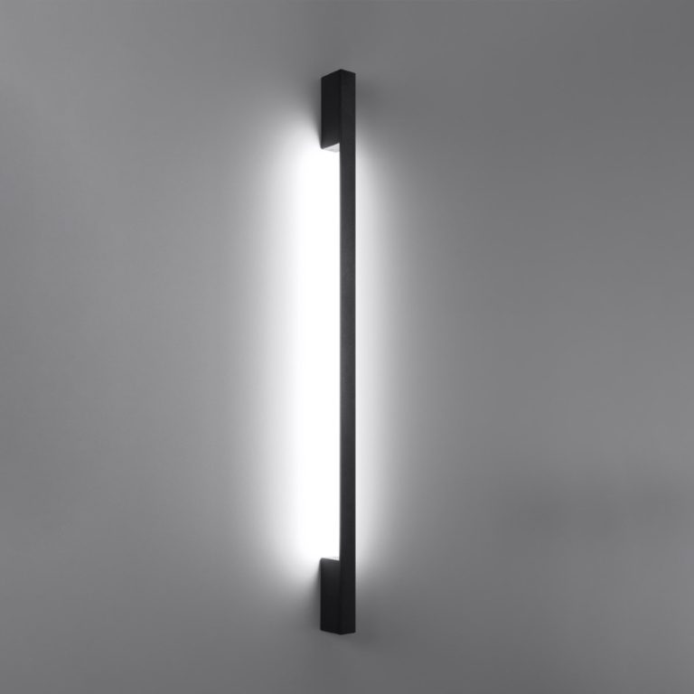 Kinkiet ścienny przyciąga uwagę przede wszystkim oszczędną formą – to smukła listwa świetlna oparta na dwóch niewielkich punktach montażowych, które zapewniają stabilne i estetycznym mocowanie do ściany. Całość ma 120 cm wysokości, 5 cm szerokości oraz 6,5 cm głębokości, dzięki czemu sprawdza się zarówno w przestronnych, jak i w kameralnych pomieszczeniach. Model możesz wykorzystać do oświetlenia strefy wypoczynkowej w salonie, łóżka w sypialni, ale też korytarza, czy okolicy schodów.