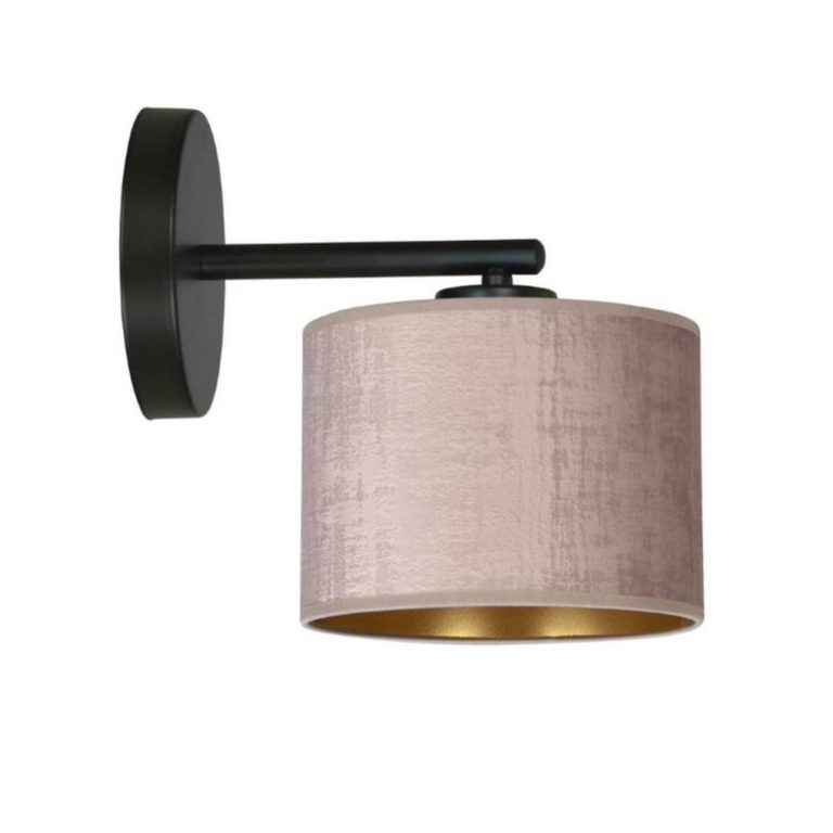 Lampa ścienna Wendy to polski produkt, który wykonano z najwyższą starannością i w oparciu o najnowsze trendy z branży oświetleniowej. Model ten składa się z prostej, ale bardzo stylowej konstrukcji: metalowego stelaża montowanego do ściany oraz wspomnianego już abażuru o cylindrycznym kształcie. Klosz wykonano z tkaniny w kolorze pudrowego różu. Jego wewnętrzna strona przepięknie połyskuje na złoto. Średnica abażuru wynosi 18 cm, a wysokość 16 cm (cała lampa ma wysokość 24 cm).
