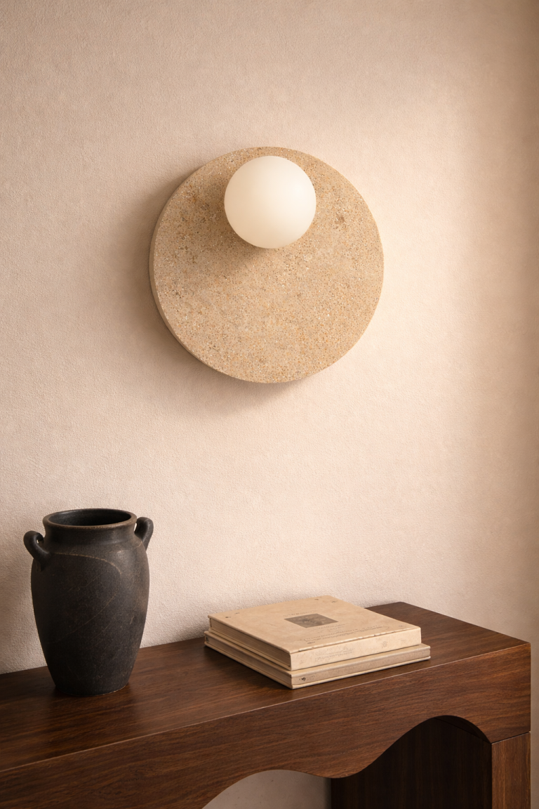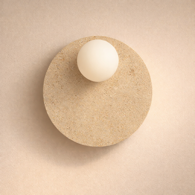 Kinkiet z trawertynu Stone – kulisty klosz
