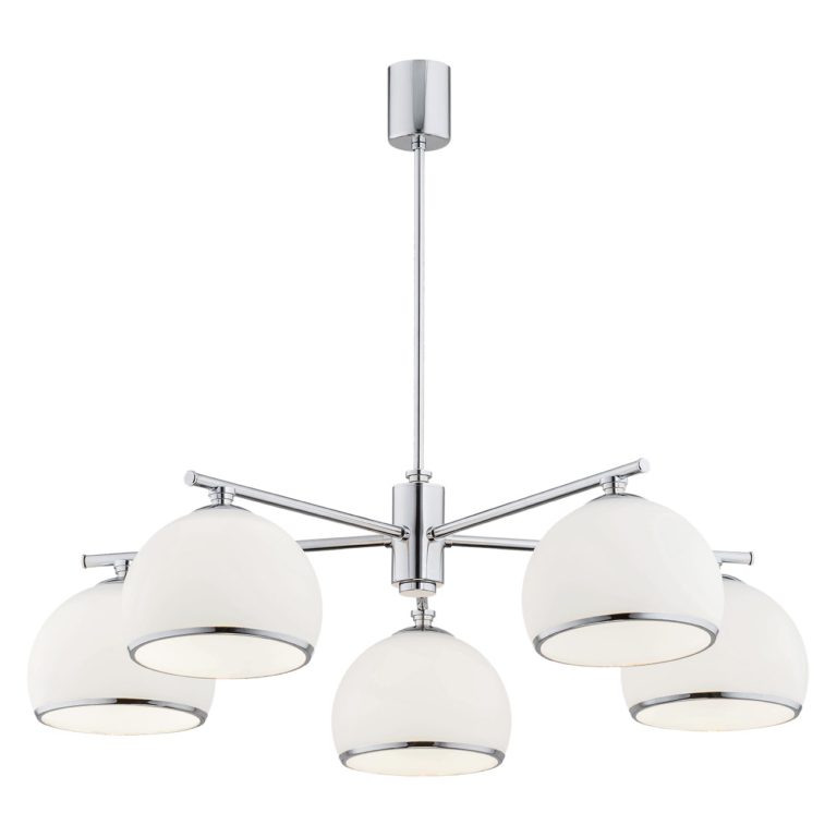 Jest to model wyróżniający się klasyczną biało-chromowaną kolorystyką, dzięki której żyrandol sufitowy na wysięgniku Marbella 5 prezentuje się nadzwyczaj gustownie, a także świetnie zestawia się z innymi elementami wyposażenia. Szczególnie dobrze pasuje do jaśniejszych wnętrz oraz do klasycznych mebli, a nawet do antyków. Model ten możesz także wykorzystać jako oświetlenie do eklektycznej aranżacji, w której postawisz na odniesienia do różnych nurtów.