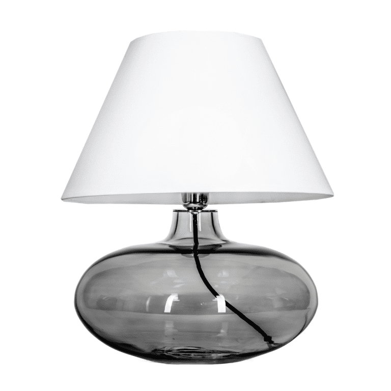 Niezależnie od tego, czy w Twoim domu gości styl glamour, czy nowoczesny, klasyczna lampka stołowa Stockholm ze szkła w kolorze popielatym odnajdzie się tam perfekcyjnie. Biały tkaninowy klosz, zwężany ku górze, ciekawie kontrastuje z eliptyczną podstawą, zmiękczając nieco jej surowe rysy. Całość, wysoka na 47 i szeroka na 40 cm, stanowi praktyczny, poręczny oraz wyjątkowo przyjemny dla oka dodatek, będący propozycją polskiej marki, która stworzyła kolekcję pasującą do niemal każdego wnętrza. A znalazł się w niej także model w innych odcieniach.