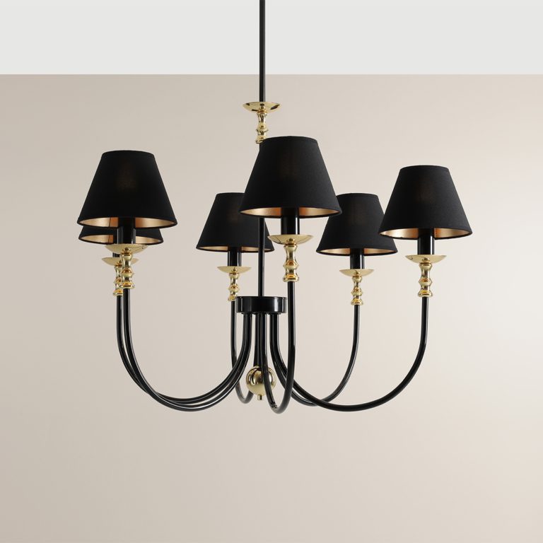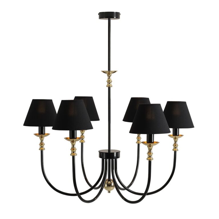 Klasyczny żyrandol Roma 6 z czarnymi abażurami