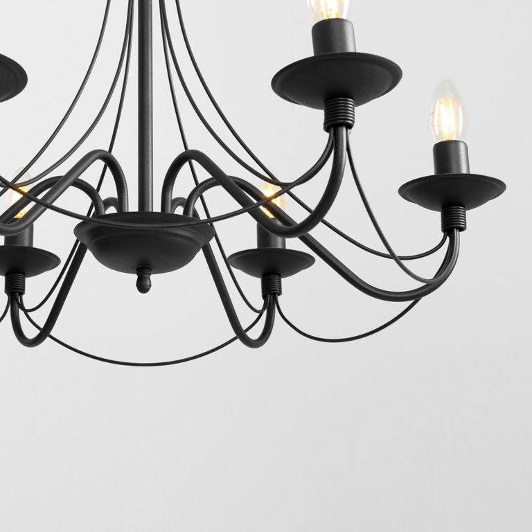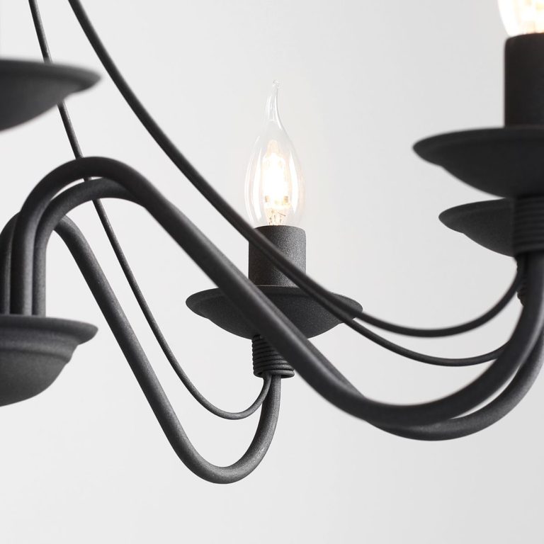 Klasyczny żyrandol świecznikowy Bibione 6 pomalowany jest na czarno, co sprawia, że model ten doskonale prezentuje się w niemal każdej aranżacji . Niezależnie od tego czy wolisz jasne, czy ciemne wnętrza, lampa ta pasować będzie do każdego z nich. Jeśli chcesz jeszcze bardziej podkręcić stylistykę tego modelu, dobierz do niego dodatki w złotym, miedzianym lub srebrnym kolorze. Tego rodzaju połączenie prezentować się będzie jeszcze bardziej elegancko.