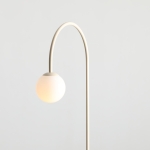 Lampa stojąca nowoczesna Una wyróżnia się lekkością formy i subtelną kolorystyką opartą na jasnym odcieniu beżu i mlecznej bieli. Model składa się z metalowego stelaża w kształcie łuku z okrągłą podstawą oraz z klosza-kuli. Kremowa lampa stojąca Una znakomicie wpisuje się w aktualne trendy, stanowiąc doskonałe uzupełnienie aranżacji nowoczesnych, minimalistycznych, skandynawskich i loftowych, szczególnie tych o stonowanej jasnej kolorystyce.