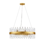 Głównym elementem żyrandola glamour Cholula jest pojedynczy złoty pierścień o średnicy 75 cm, który ozdobiony został kryształowymi elementami. Model przystosowany został do aż osiemnastu źródeł światła, dzięki czemu skutecznie rozjaśnia przestrzeń. Dzięki metalowym i szklanym elementom, kryształowy żyrandol Cholula w złotym kolorze pięknie odbija światło, wnosząc do przestrzeni wyjątkowy blask!