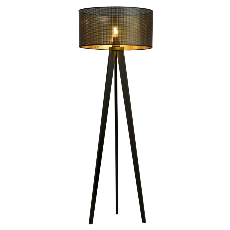 Czarna lampa stojąca na trójnogu Sofia jednocześnie nawiązuje do stylu skandynawskiego, jak i industrialnego. Ten wyjątkowo eklektyczny design powoduje, że możesz wykorzystać oferowany model do rozjaśnienia aranżacji o bardzo różnym charakterze. Większa część Sofii ma czarny kolor, dodatkowym akcentem kolorystycznym jest tutaj subtelne mieniące się, złote wnętrze klosza, która równocześnie nadaje całości elegancji.