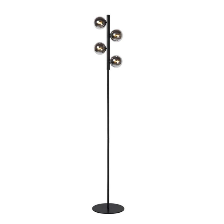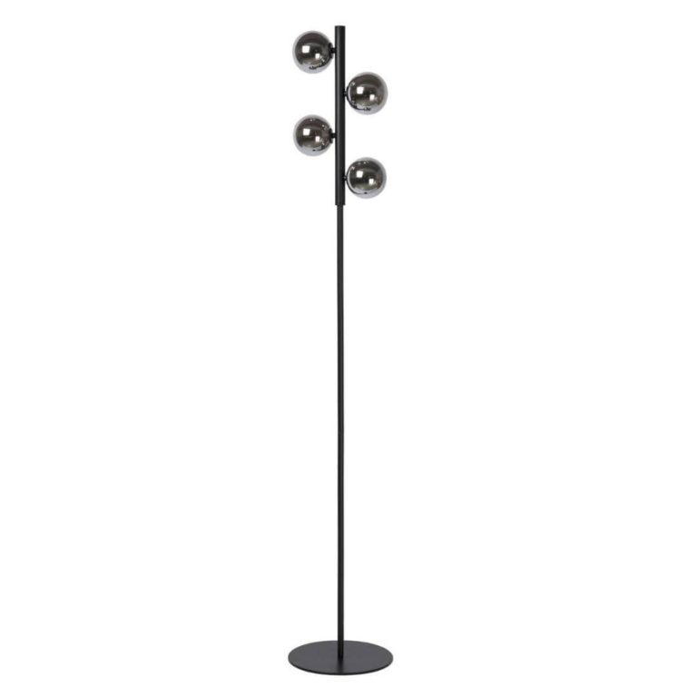 Tycho 4 składa się z prostego stelaża, będącego bazą dla czterech kulisty kloszy. To właśnie te cztery kule powodują, że całość prezentuje się tak oryginalnie! Każda z nich ma identyczne wymiary oraz wykonana jest z tego samego materiału – dymionego szkła. Szklana lampa stojąca Tycho 4 ma wysokość 154 cm oraz szerokość 25 cm. Klosze mają średnicę 10 cm. Średniej wielkości rozmiary pozwalają na dopasowanie modelu zarówno do mniejszych, jak i większych wnętrz. Tycho 4 doskonale prezentuje się, chociażby przy kanapie lub fotelu w salonie, ale również w kąciku sypialni.