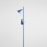 Lampa podłogowa w kolorze niebieski Form 2 wykonana została z wysokiej jakości metalu, co zapewnia jej solidność, a jednocześnie łatwość w pielęgnacji. Model składa się z prostej podstawy oraz dwóch kloszy w formie stożków, które pozwalają na równomiernie rozproszenie światła – całość tworzy spójną estetycznie całość.