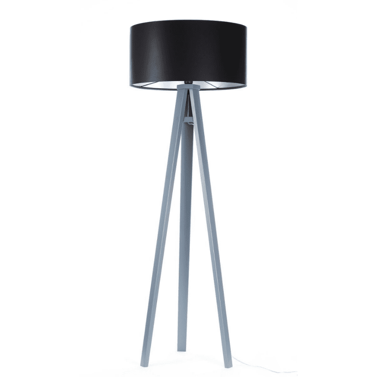 Kolor popielaty wykorzystany w podstawie lampy tworzy swego rodzaju ciekawy kontrast z czernią pokrywającą klosz, przez co całość jest jeszcze bardziej okazała. Dzięki temu, że trójnóg został stworzony z drewna, lampa może odnaleźć się we wnętrza w stylu skandynawskim. Wystarczy postawić w jej pobliżu zieloną roślinność, by stworzyć coś absolutnie nieszablonowego. Całość wygląda bardzo estetycznie, dlatego jest świetnym dopełnieniem dla wielu wystrojów.