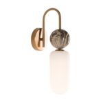 Kinkiet szklany Roma wyposażony jest również w stalowy stelaż w ponadczasowym złotym kolorze, który jeszcze bardziej podkreśla elegancję całości. Złota lampa ścienna Roma z kulistym dekorem ociepla także wizualnie przestrzeń i znakomicie zestawia się z elementami wyposażenia o różnych barwach. Niezależnie więc, czy marzy Ci się jasna stonowana aranżacja, czy wystrój o zdecydowanym charakterze – kinkiet złoty Roma będzie idealnym wyborem!