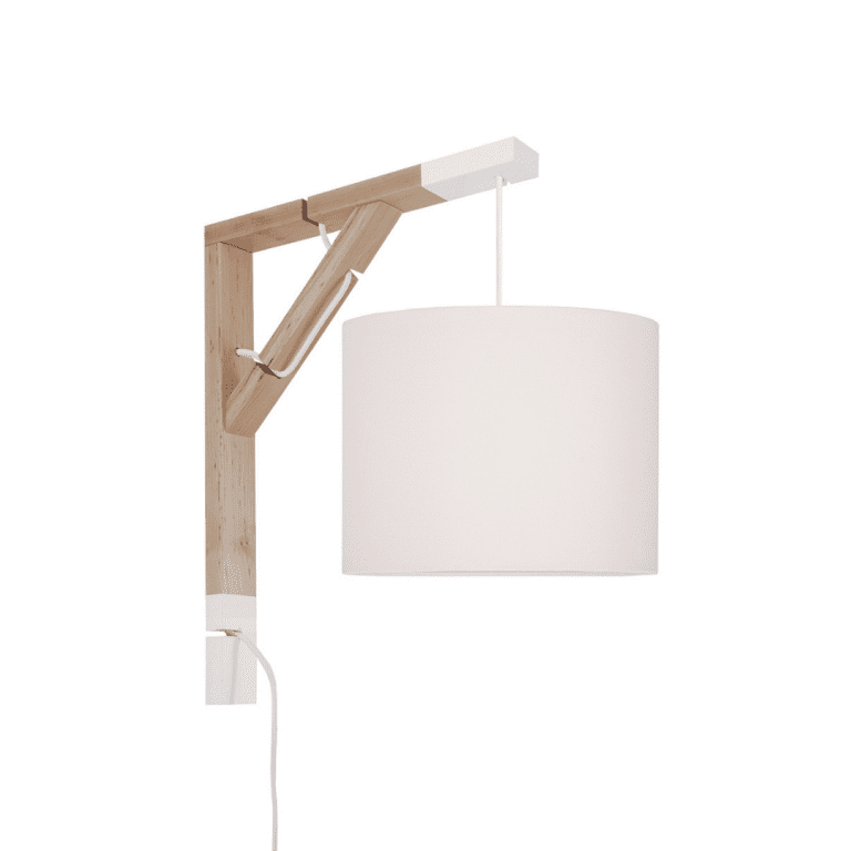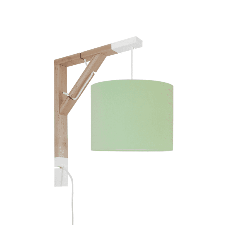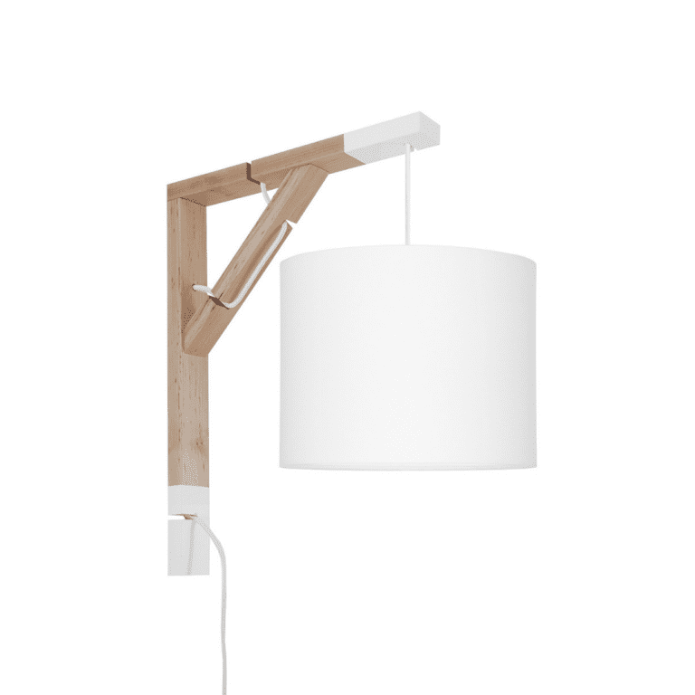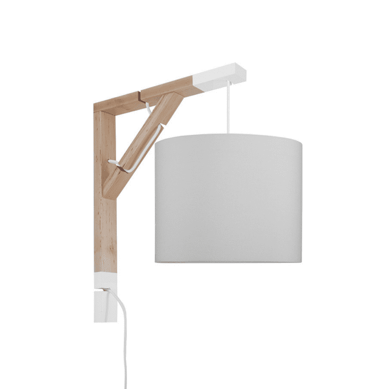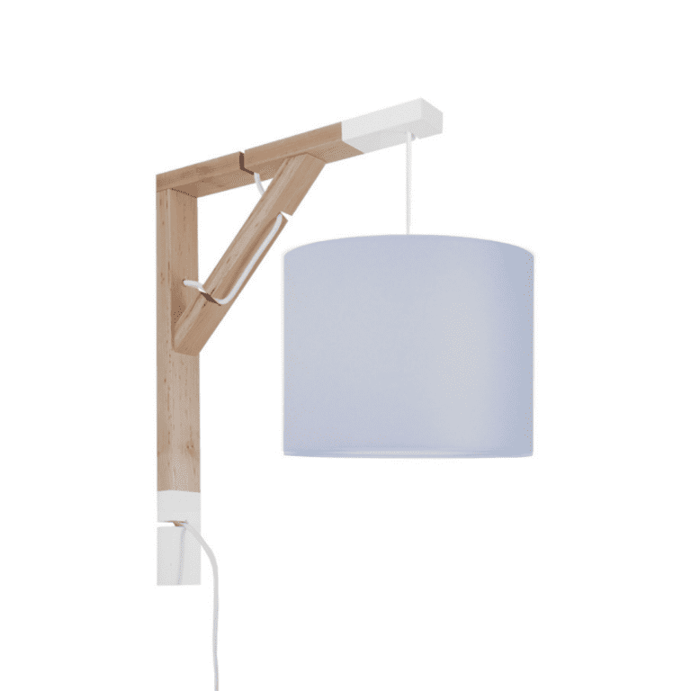 Oto oryginalna lampa ścienna Simple – do pokoju dziecięcego, ale nie tylko takiego, który zamieszkuje maluszek. To opcja idealna również dla młodego człowieka w wieku wczesnoszkolnym, a i nastolatkowi może przypaść do gustu. Wysoka na czterdzieści pięć i szeroka na trzydzieści pięć centymetrów konstrukcja jest bowiem doskonałą alternatywą dla wersji stawianej na biurku podczas nauki. Składa się na nią dwukolorowy stelaż z naturalnego dębu oraz delikatny bawełniany abażur o dwudziestopięciocentymetrowej średnicy.