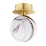 Lampa ścienna z kloszem imitującym marmur Fabio doskonale komponuje się zarówno z wnętrzami nowoczesnymi, jak i wystrojem inspirowanym stylem eklektycznym i glamour. Możesz ją jednak wykorzystać również jako dodatek do innych aranżacji – nietypowy wygląd kinkietu Fabio pozwala na eksperymenty! Oferowana lampa eklektyczna wykonana jest ze szkła i mosiądzu i utrzymana w biało-brązowo-złotej kolorystyce, która wraz z geometryczną formą oprawy, wnosi do wnętrza elegancję. Dla zachowania spójności, podobny motyw kolorystyczny warto powtórzyć w innych częściach wnętrza.
