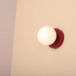 Kinkiet ścienny Bram II S wyposażony został w szklany klosz w modnym kształcie kuli w mlecznobiałym kolorze. Zarówno jego forma, jak i barwa sprawiają, że światło miękko się rozprasza, wnosząc do wnętrza przyjemny klimat. Lampa ścienna z kloszem kulą Bram II S składa się również z metalowego przyściennika w odcieniu czerwonego wina. Ten mały detal przyciąga uwagę i sprawia, że cała oprawa nabiera dekoracyjnego charakteru.
