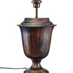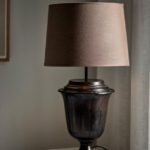 Polecana oprawa doskonale sprawdza się w roli lampki nocnej, którą postawić możesz obok szafki przy łóżku – najlepiej po obu jego stronach, co nada przestrzeni harmonii. Czarna lampa stołowa Elli z postarzaną podstawą wyjątkowo dobrze współgra z antykami oraz meblami w stylu klasycznym. Oferowana lampa na stół wyposażona jest w brązowy tkaninowy klosz, który przyciemnia światło i tym samym ociepla wnętrze.