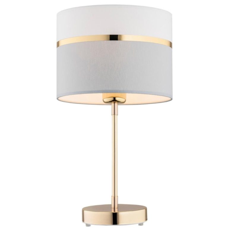 Wyjątkowo elegancka lampa stołowa w stylu klasycznym Kaser wyposażona jest w tkaninowy abażur w biało-szarej kolorystyce oraz stalową podstawę, która podobnie jak detale na kloszu, wyróżnia się połyskującym złotym wykończeniem. Oświetlenie do wnętrz Kaser zarówno ze względu na swoja formę, jak i barwy, doskonale pasuje do bardzo różnych aranżacji. Dla zachowania spójności, warto zestawić ją z innymi elementami wyposażenia w podobnym stylu.