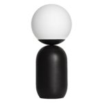 Dzięki kulistemu białemu kloszowi o średnicy 15 cm, lampa stołowa nowoczesna Notti znakomicie rozprasza światło, dlatego sprawdzi się podczas czytania, ale i wnosi do wnętrza kameralny klimat. Lampa stołowa Notti na czarnej podstawie z metalu wyróżnia się wysoką jakością wykonania, w której liczy się każdy detal. Całkowita wysokość oprawy wynosi 34,5 cm, dzięki czemu idealnie nadaje się na stolik nocny, ale też na komodę, czy biurko.