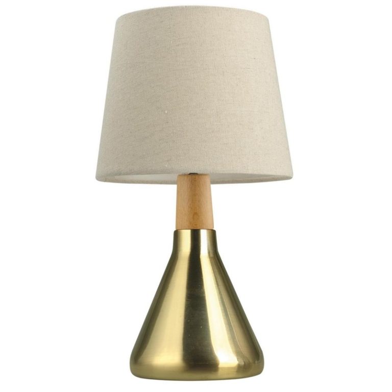 Lampa stołowa do sypialni Ovalle to solidna metalowa podstawa w kolorze złotym, urozmaicona elementem imitującym drewno oraz tkaninowy klosz o rozszerzającej się formie, która doskonale rozprasza światło. Abażur ma uniwersalny stonowany odcień, który wizualne łagodzi połyskującą podstawę. Metalowa lampa stołowa z kloszem Ovalle z jednej strony nawiązuje do klimatu skandynawskiego, z drugiej do nowoczesności, a także do nieśmiertelnej klasyki.