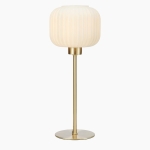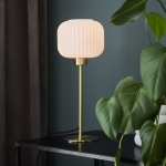 Połączenie elegancji i nowoczesnego designu – lampa stołowa Sober to propozycja, która zachwyca stylem od pierwszego spojrzenia! Wyposażona w metalową podstawę w kolorze mosiądzu, przepięknie odbija światło, które płynie z białego klosza wykonanego z ryflowanego szkła. Lampa Sober to idealne uzupełnienie wystroju sypialni, salonu, ale i eleganckiego hotelu, czy stylowego biura.