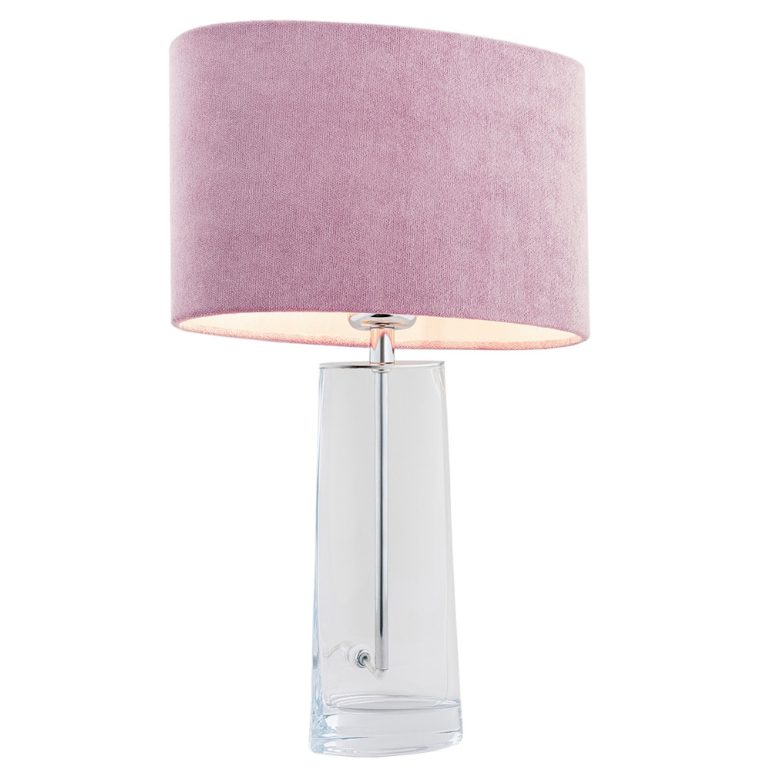 Cała lampa stołowa w nowoczesnym stylu Prato składa się z zamszowego abażuru w kolorze różowym, chromowanego stelaża oraz otaczającej go szklanej i transparentnej podstawy. Polecane oświetlenie wewnętrzne świetnie pasuje do jasnych aranżacji, w których znajdą się również inne elementy wyposażenia w różowym kolorze – w tym samym lub innym odcieniu. Materiał i kolorystyka klosza sprawia, że emitowane światło jest przyjemnie miękkie i ciepłe.
