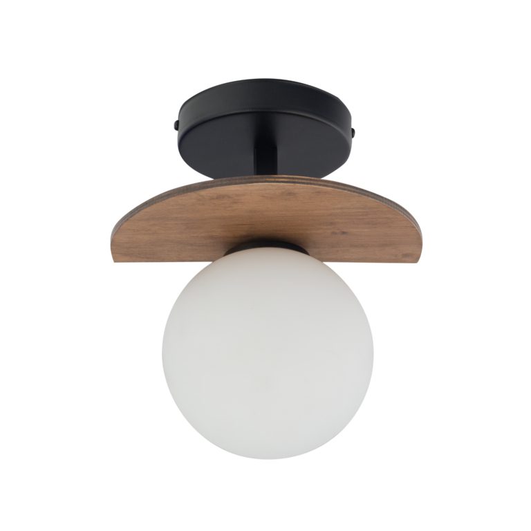 Najbardziej charakterystyczną cechą naszej lampy sufitowej jest z pewnością mlecznobiały klosz, który prezentuje się bardzo nowocześnie i stylowo. Oprawa z ciemnego drewna i czarnego metalu doskonale komponować się będzie z surowymi wnętrzami w stylu loft. Trend ten nawiązuje do kryzysu lat 50. w Stanach Zjednoczonych i do opuszczonych pofabrycznych przestrzeni. Surowość, minimalizm i uwydatnienie elementów konstrukcyjnych budynku, to tylko niektóre cechy stylu industrialnego i loftowego.
