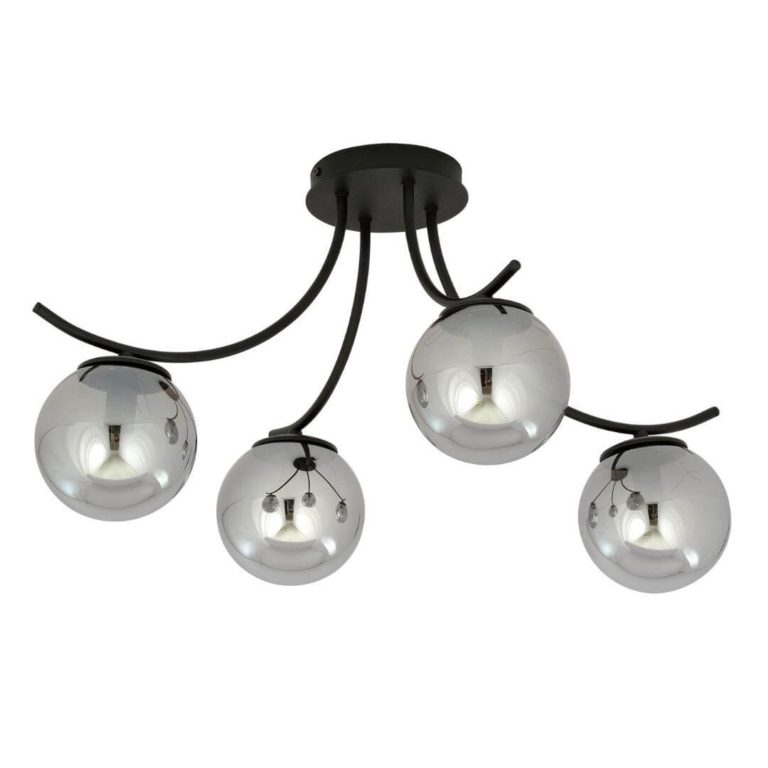 Jedną z największych zalet, polecanej przez nas lampy na sufit Dali 4, jest jej wysoka jakość wykonania, która pozwoli Ci cieszyć się doskonałym oświetleniem przez długi czas. Do stworzenie oferowanego modelu polski producent użył wytrzymałej stali lakierowanej na czarno oraz niezwykle eleganckiego szkła o oryginalnym, popielatym zabarwieniu. Mocny metalowy stelaż stanowi doskonałą podstawę dla szklanych, kulistych kloszy. Całe oświetlenie sufitowe Dali 4 prezentuje się bardzo dekoracyjnie. Wpływ mają na to nie tylko przepiękne połyskujące klosze, ale również fantazyjnie wygięte ramiona stelaża.