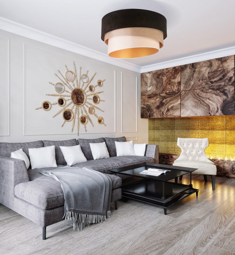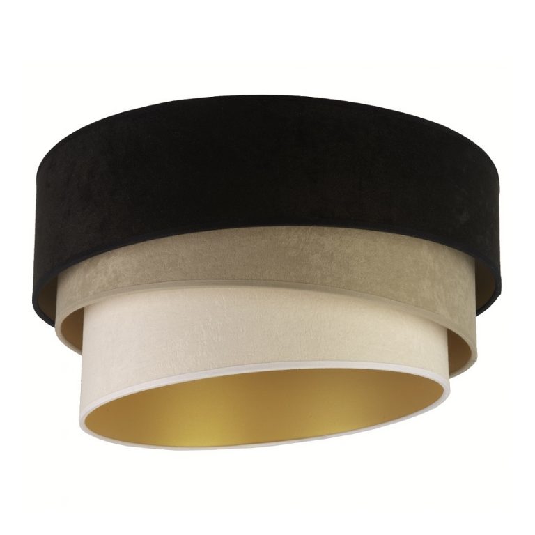 Potrójny abażur w barwach czerni, beżu i kremu w wyjątkowy sposób uzupełnia złota folia wewnątrz. To za jej sprawą plafoniera sufitowa zyskuje blask i czar. Za wygląd, klasę i elegancję lampa ta bez wątpienia powinna otrzymać Oscara. Z racji komponentów wysokiej jakości, jakie zostały w niej wykorzystane, zasługuje na najlepsze miejsce w Twoim domu.