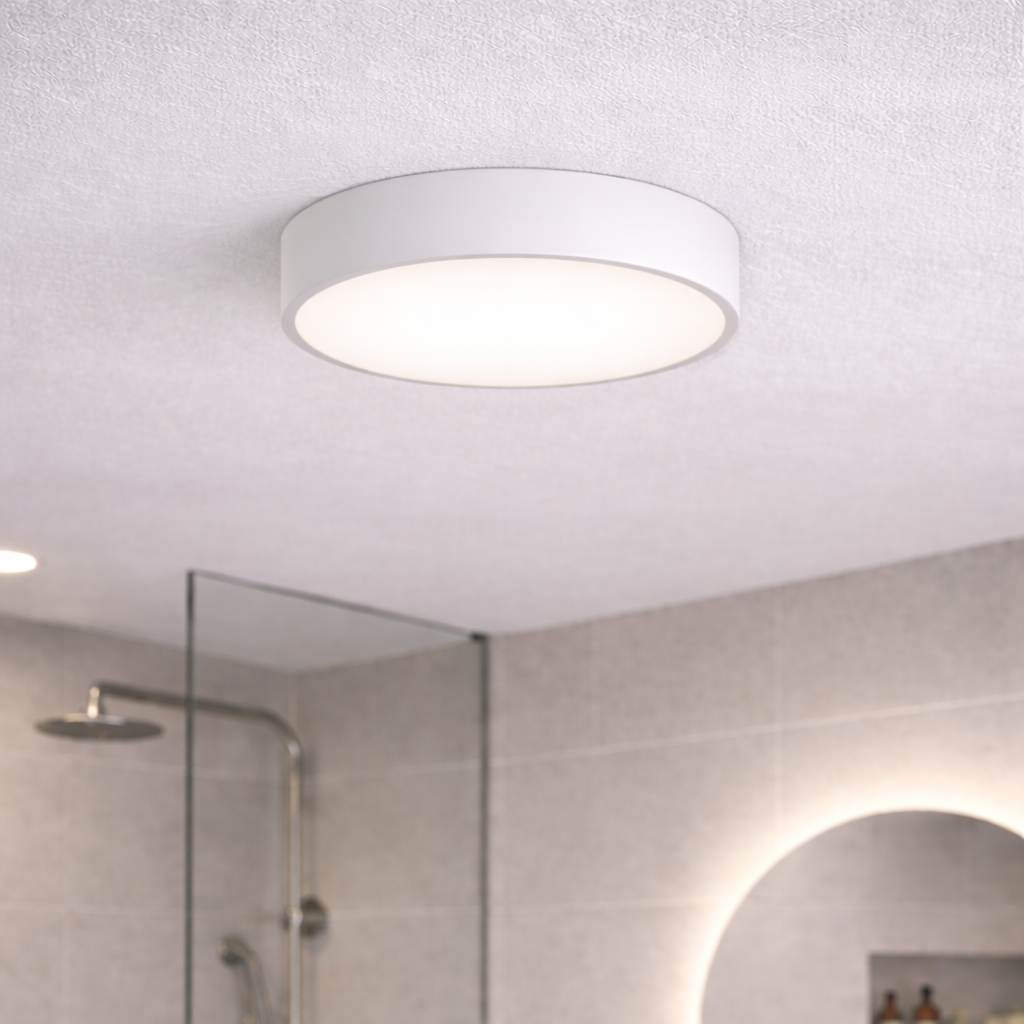 Nowoczesna, użyteczna, a jednocześnie bardzo stylowa – lampa sufitowa do łazienki Newa (⌀ 30 cm) łączy w sobie funkcjonalną formę oraz klasę, którą charakteryzują się produkty z najwyższej półki. Zastosowano w niej system TWIST, dzięki czemu śruby oraz inne elementy mocowania pozostają niewidoczne. Stalową, wysoką na siedem i pół centymetra ramę zamknięto mlecznobiałą, przyjemnie rozpraszającą światło zabudową ze szkła, wykorzystując do tego solidne, gwarantujące ponadprzeciętną żywotność materiały.