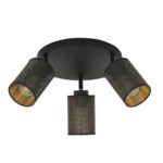 Jest to model oświetlania, który wyjątkowo dobrze pasuje do wnętrz nowoczesnych oraz industrialnych. Wpływ ma na to zarówno forma i kolorystyka prezentowanego modelu. Sufitowa lampa Ring 3 wyposażona jest w okrągłą podsufitkę-talerz oraz trzy źródła światła, z których każde przysłania dekoracyjny abażur z siateczki. Całe oświetlenie wykonanie jest z wysokiej jakości stali lakierowanej. Materiał ten charakteryzuje, między innymi, wysoka odporność na uszkodzenia mechaniczne oraz łatwość czyszczenia. Lampa sufitowa do salonu Ring 3 ma całkowitą wysokość 24 cm, szerokość 50 cm oraz średnicę podsufitki 30 cm. Każdy klosz ma postać ruchomego reflektora.