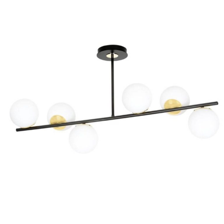 Oprócz dość dużych rozmiarów lampa sufitowa Levi 6 wyróżnia się również bardzo uniwersalną, choć nowoczesną w wyrazie formą. Model ten to prosta konstrukcja opatrzona klasyczną kolorystyką. Czerń, biel i złoto – trzy ponadczasowe barwy, dzięki którym możesz stworzyć wyjątkową aranżację w wielu różnych trendach lub połączyć kilka z nich, tworząc eklektyczny wystrój o nieoczywistym charakterze. Levi 6 bardzo dobrze będzie pasował, między innymi, do stylu minimalistycznego, loftowego oraz glamour.