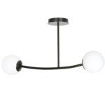 W prezentowanej nowoczesnej lampie sufitowej Mackenzie można zamontować dwa źródła światła o mocy 40 W i gwincie typu E14. Mogą to być zarówno klasyczne żarówki o klasie energetycznej od A++ do E, jak także energooszczędne żarówki LED. Lampa sufitowa Mackenzie została wyprodukowana w Polsce, przez co jest to produkt solidny, trwały i zrobiony z najlepszych materiałów. Stelaż został wykonany z metalu pomalowanego proszkowo na czarno. Na jego końcach umieszczone są kuliste klosze, które zostały zrobione z mlecznobiałego szkła.