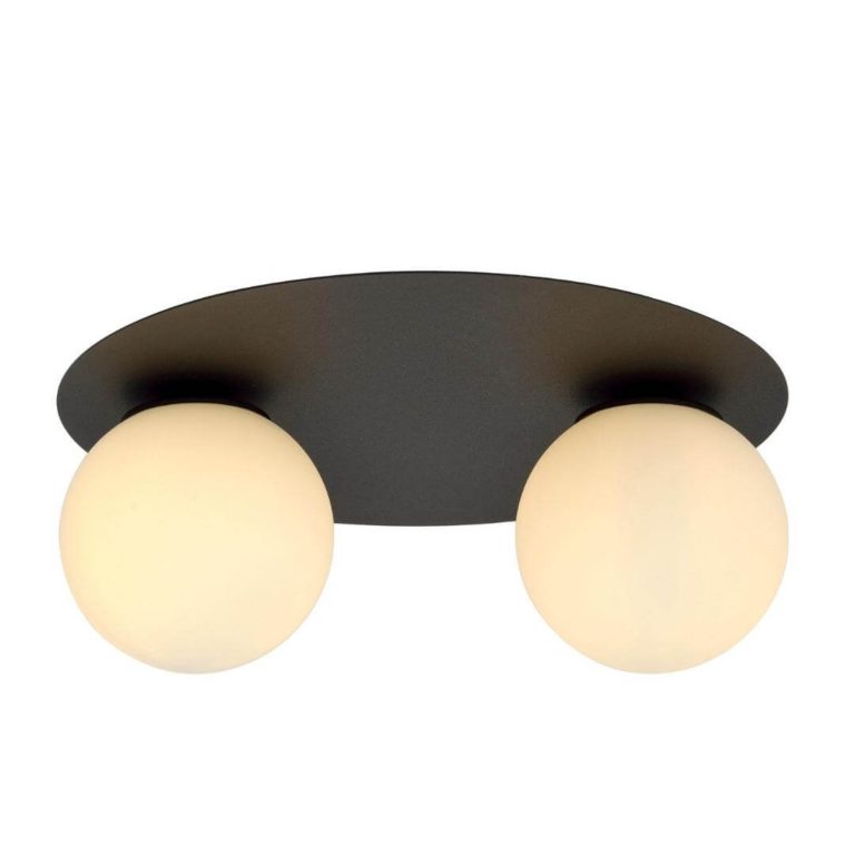 Dostępna w naszym sklepie lampa przysufitowa Manx 2 wyposażona jest w opływową, okrągłą podsufitkę z czarnej stali oraz dwa źródła światła – każde z nich osłania jeden szklany klosz w białym kolorze (oba mają formę idealnej kuli). Zarówno szklane kule, jak i metalowy stelaż prezentują się nowocześnie, razem tworząc wyjątkowo modną i uniwersalną konstrukcja, która idealnie sprawdzi się w wielu współczesnych aranżacjach.