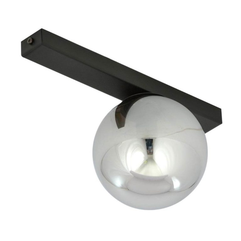 Proponowana przez nas lampa na sufit Pen składa się z dwóch głównych elementów, tworzących razem wyjątkową, choć dość minimalistyczną kompozycję. To z jednej strony stalowy, prosty stelaż w formie podłużnej podsufitki, a z drugiej szklany klosz w formie kuli. To właśnie ona jest najbardziej dekoracyjnym elementem całości, który zdecydowanie wybija się na pierwszy plan. Kulisty klosz wykonany został bowiem ze szkła o przepięknym popielatym odcieniu oraz połyskującym wykończeniu.