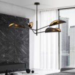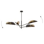 Zarówno stelaż, jak i zewnętrzna część kloszy ma czarny kolor. Wewnętrzna strona abażurów jest złota. Zestawienie ze sobą obu tych barw daje wyjątkowo elegancki, ale i też i nieco ekstrawagancki efekt, który jeszcze bardziej podkreśla oryginalność sufitowej lampy Alicante 4. Model ten doskonale daje się aranżować – zarówno czerń, jak i złoto pasują do wnętrz o bardzo różnym charakterze. Jeśli chcesz wprowadzić do wystroju harmonię, postaw również na inne dodatki w tej samej kolorystyce.