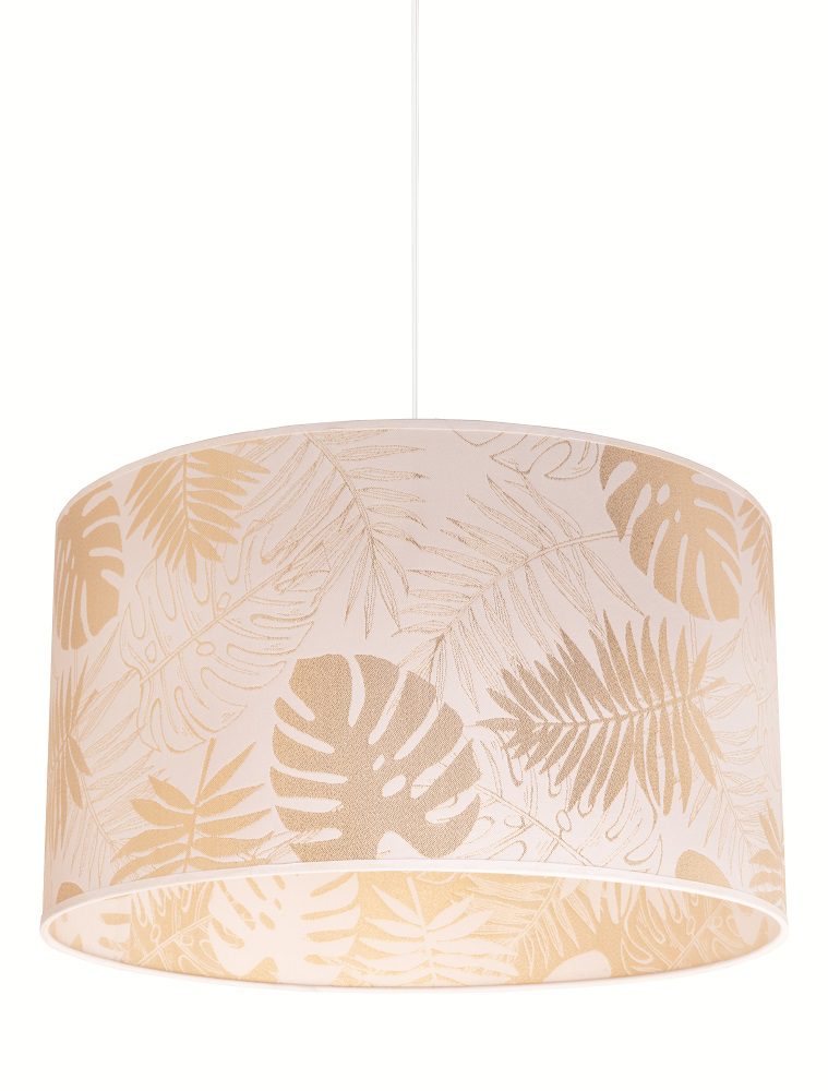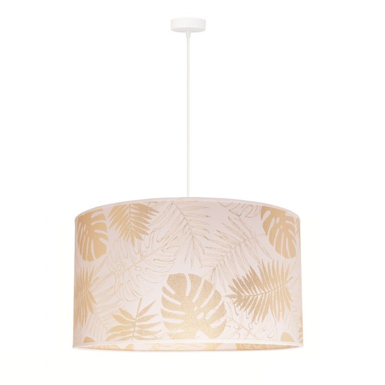 Jeśli jesteś fanem wzorzystych, niecodziennych form, to z pewnością ta lampa przypadnie Ci do gustu. Pomimo że jej abażur ma prostą, walcowatą formę robi duże wrażenie. To wszystko dzięki złotym florystycznym wzorom. Lampa wisząca należąca do kolekcji Areca stworzy idealną kompozycję z plafonem Areca ze złocistym motywem roślinnym. Wykonana została z najwyższej jakości tkaniny bawełnianej, która jest łatwa w wyczyszczeniu.