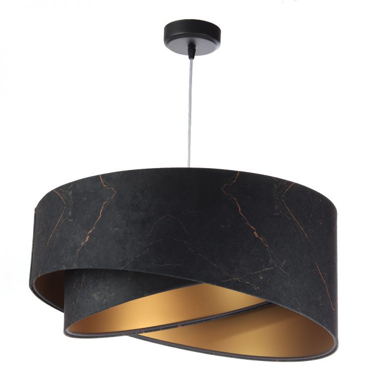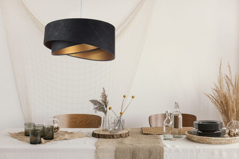 Model ten doskonale będzie się prezentować w aranżacjach, w których występują także inne dodatki w kolorze czarnym i złotym. Abażurowa lampa wisząca Asymmetric Marble bardzo dobrze będzie także wyglądać w towarzystwie marmurowych elementów. Takie połączenie dodatkowo nada całej aranżacji wyrafinowanego charakteru.