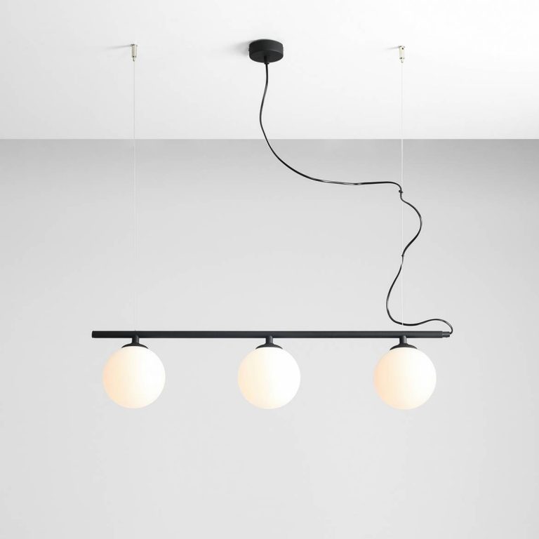 Oferowana przez nasz sklep internetowy lampa wisząca Bari 3 składa się z czarnej metalowej listwy wyposażonej w trzy białe klosze. Zarówno prostota formy, jak i niezobowiązująca kolorystyka powodują, że jest to model idealny zarówno do wnętrz urządzonych w stylu minimalistynym, jak i industrialnym.