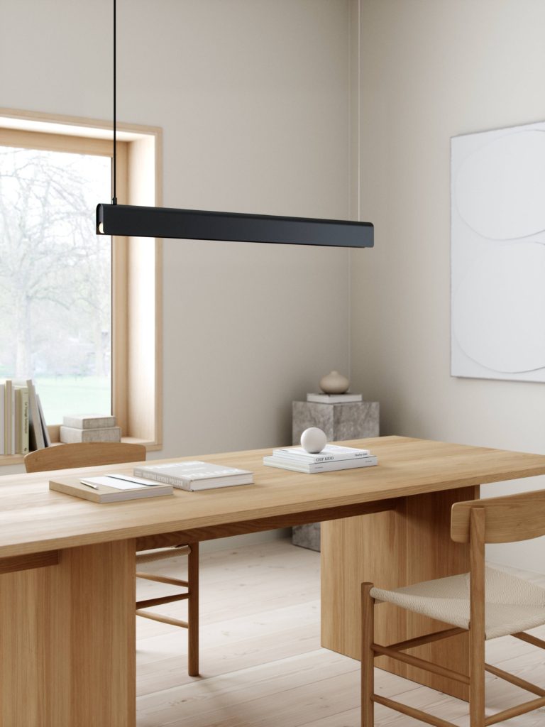 Przydatna w domu i biurze – lampa wisząca Beau w czarnym kolorze to uniwersalne i nowoczesne oświetlenie, idealne do zamontowania nad stołem, biurkiem, czy w długim holu. Oferowany model wyróżnia prosta designerska forma, która doskonale wpisze się w większość aranżacji.