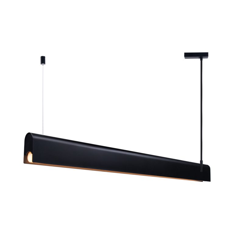 Lampa do biura Beau to projekt przemyślany pod każdym względem. Model wykonany został z trwałych i łatwych w utrzymaniu materiałów: metalu tworzywa sztucznego. Lampa wisząca Beau w czarnym kolorze składa się z podłużnego designerskiego klosza, który wyposażony został w zintegrowane oświetlenie LED. Oprawa emituje światło o ciepłej barwie 2700 K, dlatego oprócz funkcji praktycznej, wnosi do wnętrza również przyjemną nastrojową atmosferę.