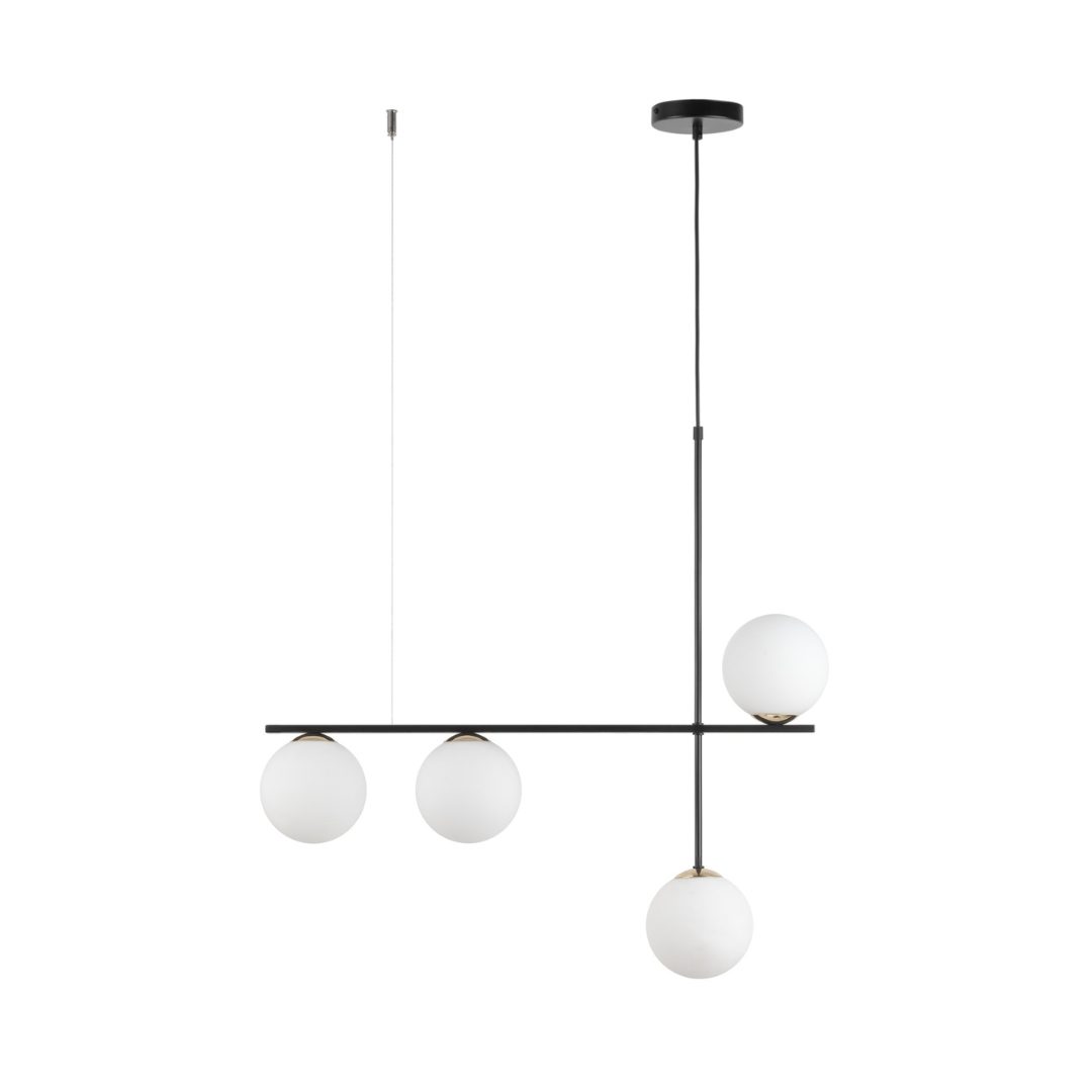 Klosze w mlecznobiałym odcieniu oraz czarny stelaż sprawiają, że asymetryczna lampa wisząca do kuchni i jadalni Bera 4 wyjątkowo dobrze prezentuje się w minimalistycznych aranżacjach, w których najczęściej stosuje się właśnie te klasyczne barwy. To jednak również oświetlenie o tak dużej uniwersalności, że bez problemu dopasujesz je do zupełnie innych kolorów, a nawet stylów wnętrzarskich. Lampa wisząca Bera 4 o asymetrycznej formie znakomicie pasuje, chociaż do wystroju loftowego.